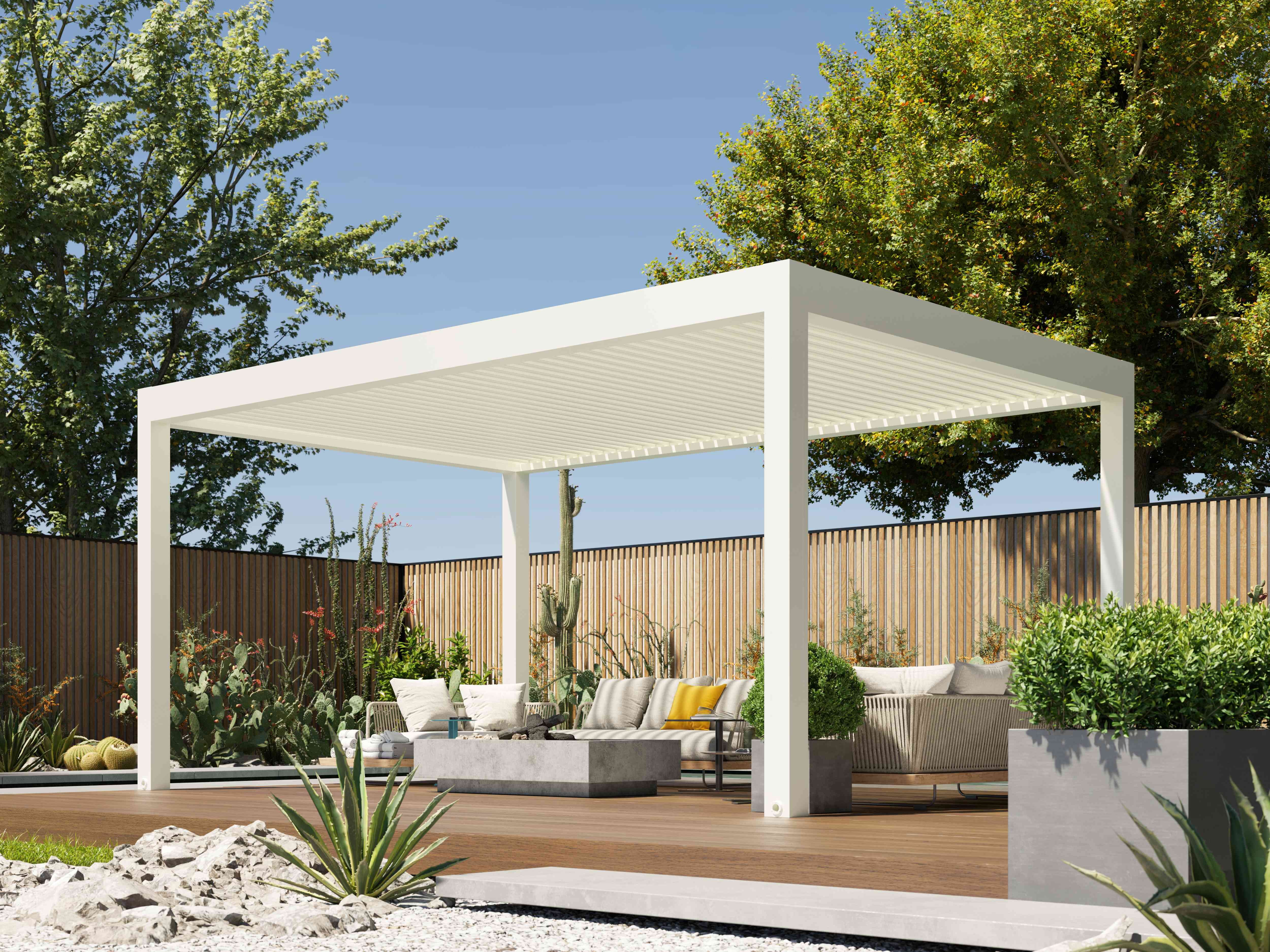 De Divara is de onbetwiste keuze voor grote terrassen die vragen om een sfeervolle en functionele toevoeging. Dit lamellendak combineert robuuste duurzaamheid met verfijnd design, waardoor het een elegante en praktische oplossing biedt voor uw klanten. Met grote, roterende lamellen kunnen zij eenvoudig de gewenste hoeveelheid licht en schaduw creëren. De Divara kan worden uitgebreid met sfeervolle ledverlichting, schuifwanden, en verticale zonwering om ook de laagstaande zon te weren. De Divara brengt het vakantiegevoel naar de tuin van uw klanten en biedt hen de mogelijkheid om de sfeer en schaduw op hun terras volledig naar wens te regelen. Deze designzonwering is niet alleen functioneel, maar ook een luxe statement in elke buitenruimte.
