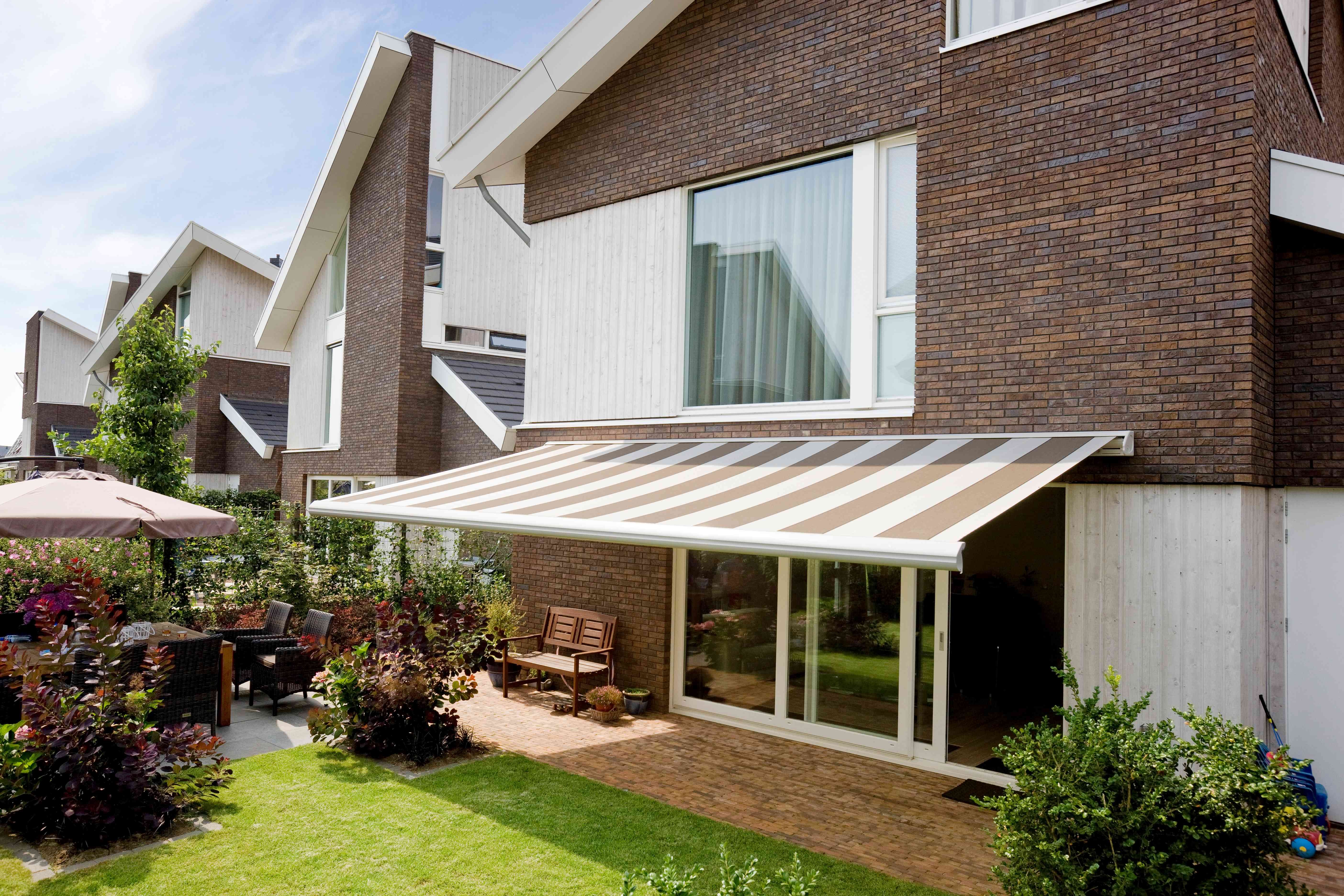 De Senza is een uiterst sterk terrasscherm, speciaal ontworpen om grote oppervlakken te overbruggen zoals bij extra brede gevels of horecatoepassingen. Met zijn robuuste constructie en de mogelijkheid om meerdere muursteunen en armen te gebruiken, biedt de Senza uitstekende stabiliteit en betrouwbaarheid.