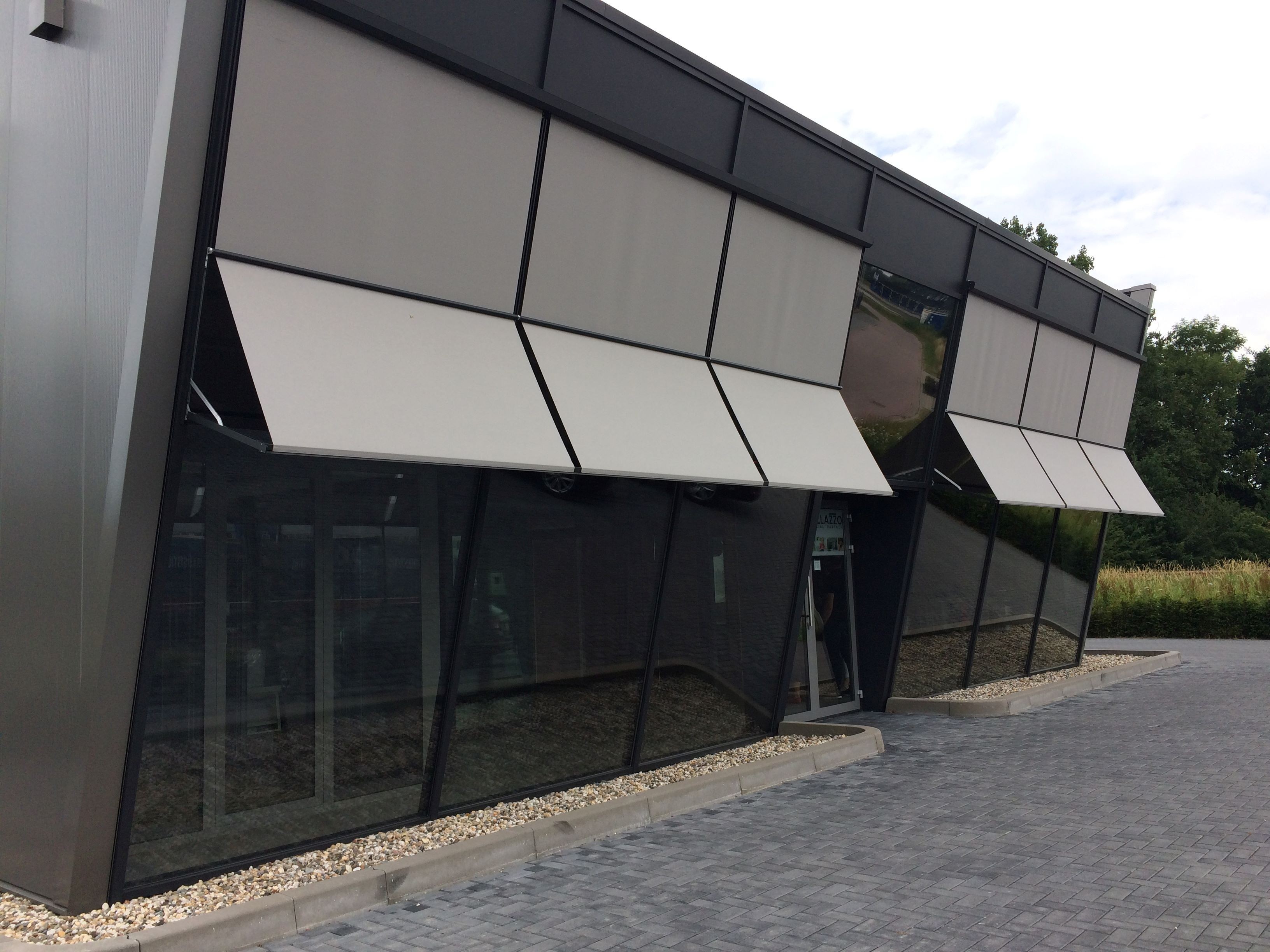 De Markisolette Excellent biedt uw klanten een slimme oplossing voor het beperken van hinderlijk zonlicht zonder het uitzicht naar buiten te belemmeren. Het doek zakt eerst recht naar beneden en wordt vervolgens in een hoek naar voren gebracht door de armen, wat zorgt voor effectieve zonwering. Dit systeem is ideaal voor hoge ramen en biedt een aantrekkelijke prijs-kwaliteitverhouding, wat het een goede keuze maakt voor diverse projecten. De strak vormgegeven omkasting past subtiel in de gevel waardoor de zonwering onopvallend geïntegreerd kan worden. Standaard heeft het scherm een uitval van 500 mm, met andere opties beschikbaar op aanvraag, zodat u de oplossing kunt bieden die het beste bij de wensen van uw klanten past.