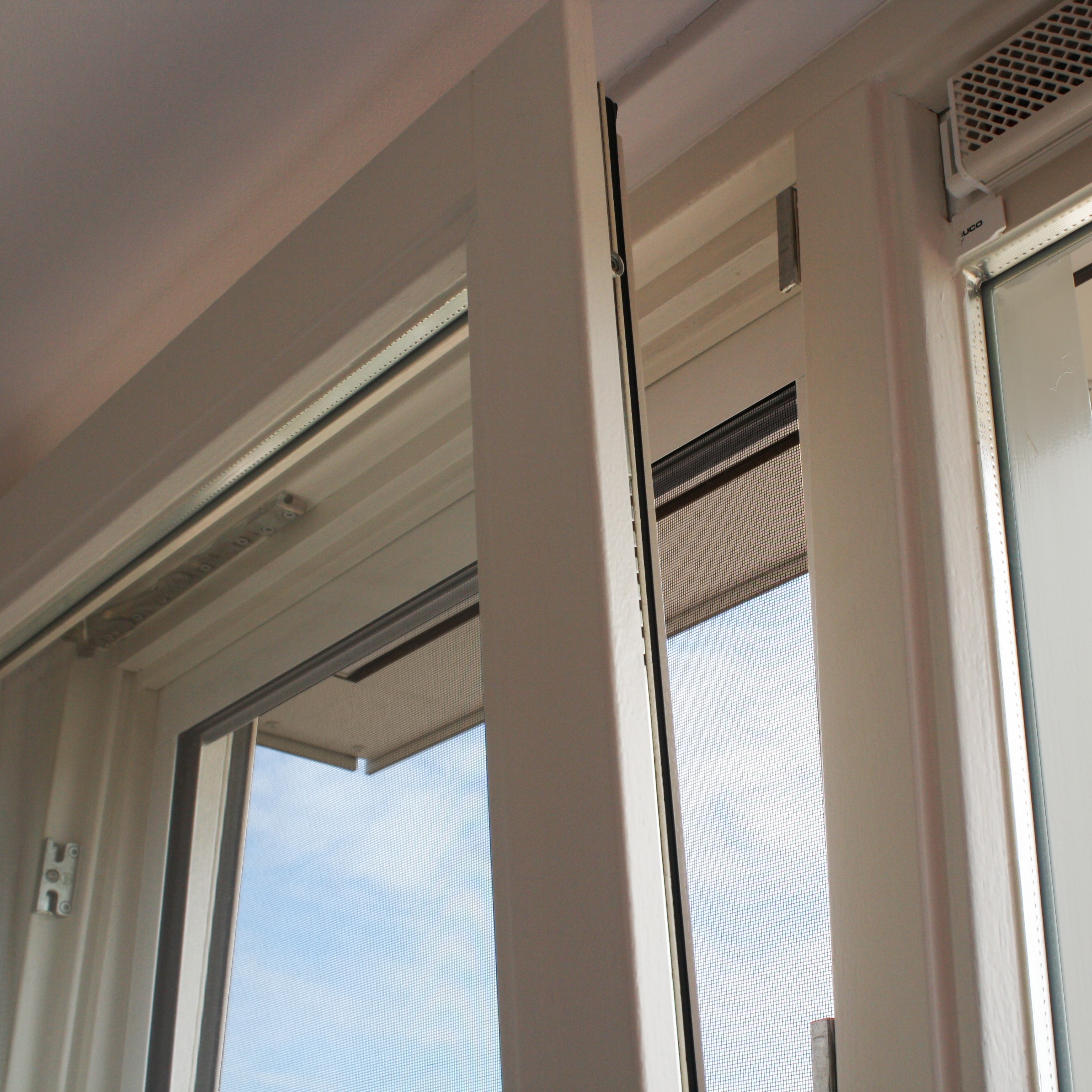 De inzethor is in het kozijn geplaatst, ook wanneer het raam gesloten is.