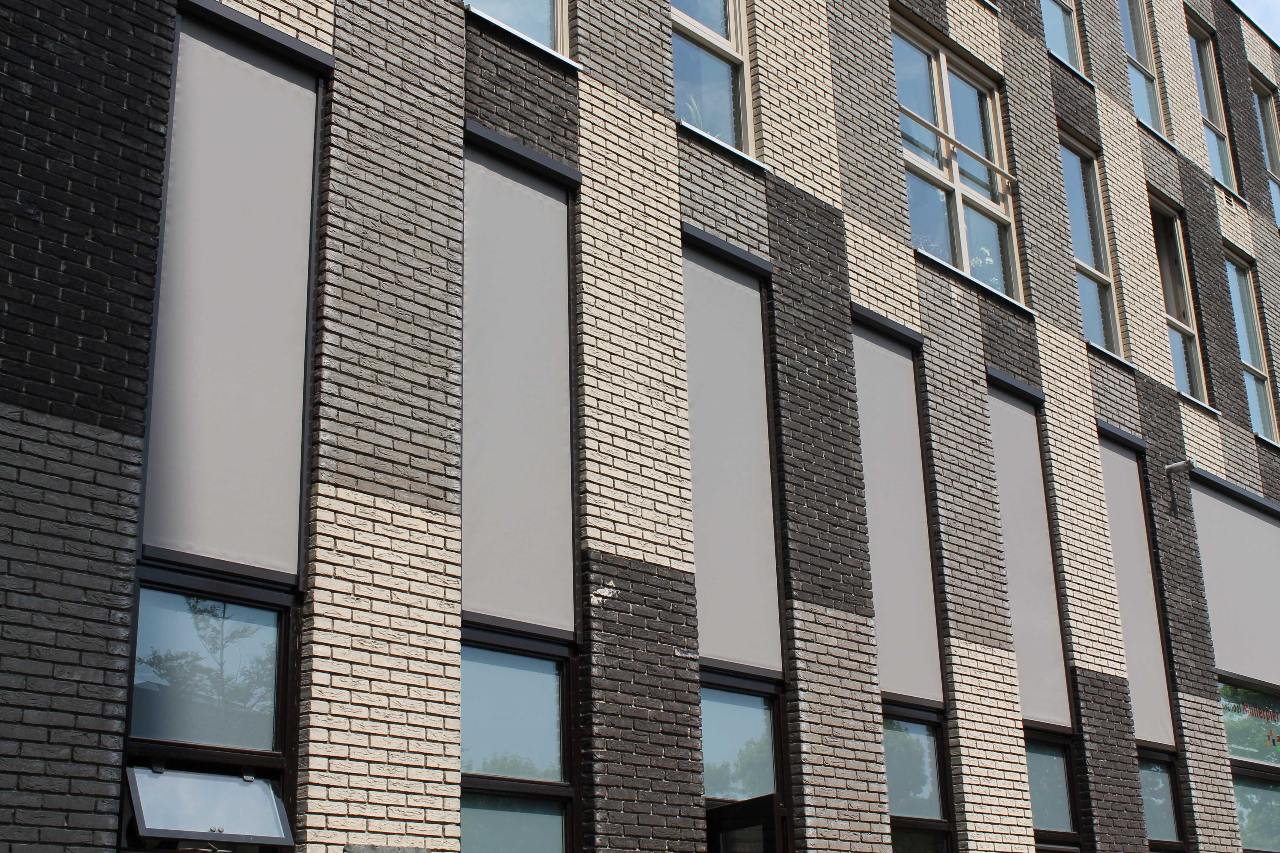 Tibelly Sergé screen fabric fits perfectly in the SolidScreen. The collection includes 40 colours and designs, which can be combined with the cassette and frame colour. Besides Sergé, AVZ also offers Tibelly ecole1% screen fabric. With a less open structure, this fabric therefore provides even better protection against annoying sunlight, making it an ideal fabric for schools and offices, where a lot of digiboards and screens are used.