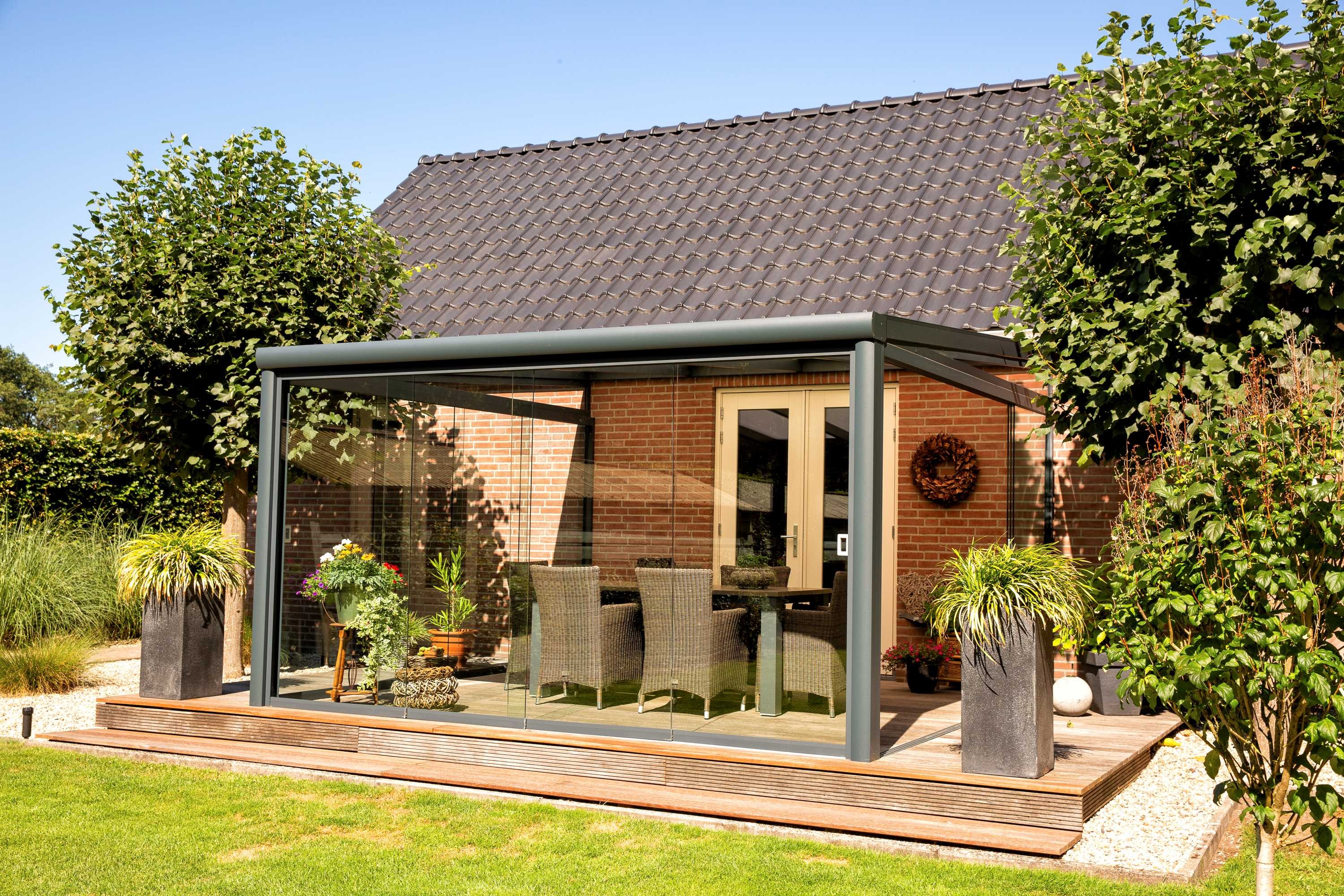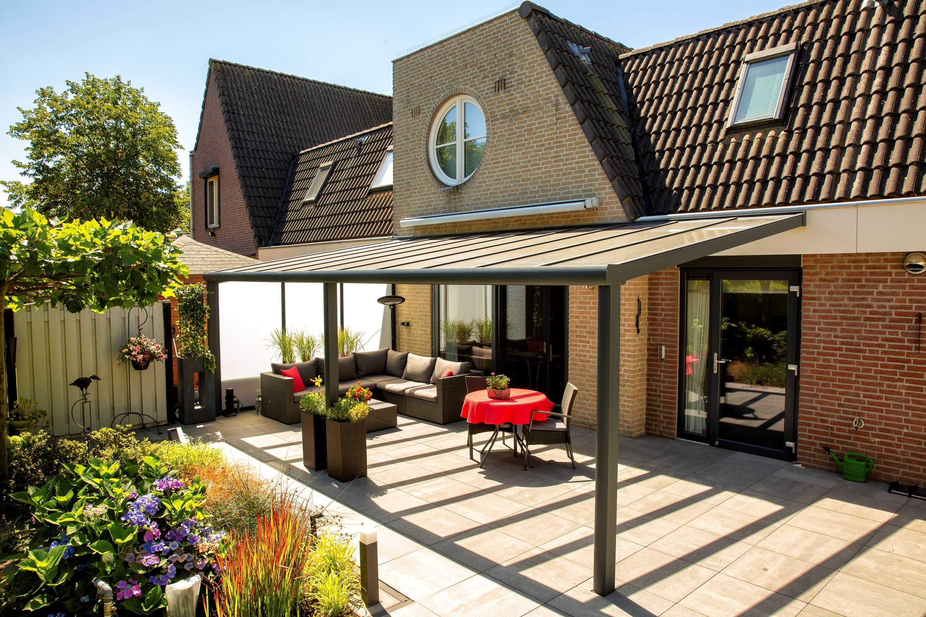 Le Piazza se distingue par sa conception bien pensée et son assemblage facile, où le système unique d'encliquetage assure une construction solide et une apparence élégante, car les vis restent largement hors de vue. Cela contribue à l'esthétique de haute qualité de l'auvent. L'évacuation d'eau intégrée dans les montants en deux parties est discrète et efficace, et vos clients peuvent opter pour un éclairage discret dans les poutres afin de rendre l'auvent encore plus fonctionnel et atmosphérique. Selon les préférences personnelles de vos clients, la Piazza est disponible avec une gouttière ronde ou victorienne. La Piazza peut être livrée en pièces détachées ou sur mesure, et peut être complétée par des stores de véranda tels que le SolidSky pour une protection solaire supplémentaire. L'ajout du SolidScreen permet non seulement de renforcer l'intimité, mais aussi de réduire la lumière latérale et de faire office de brise-vent, ce qui améliore encore le confort sous l'auvent. Avec sa construction robuste et sa finition élégante, le Piazza est la solution parfaite pour tout espace extérieur.